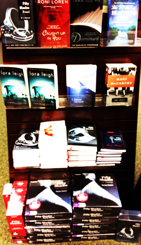 Den letzten Apfel auf dem Cover haben wir – na? – Genau. Auf dem Cover des ersten Twilight-Bandes gesehen (Bei uns Taschenbuch Piper, um genau zu sein). Twilight ist mittlerweile schon von Topaktuell – oberes Regalfach – ins untere Regalfach abgewandert. Auch irgendwie hart, wobei man Stephenie Meyers bestimmt nicht bemitleiden muss. Was bestsellermäßig im Angebot ist, unterscheidet sich nicht viel von dem Angebot bei uns. Natürlich ist da auch das Shades-of-Grey-und-ähnliches Regal.