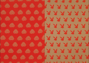 Rosemarie Trockel verwendet Wolle und Stricktechniken und baut Haushaltsgegenstände in ihre Installationen ein. Sie hat an der Strickmaschine hergestellte Wandbilder mit provokanten Strickmustern wie dem Playboy-Bunny ausgestellt. Da ging es nicht nur um den Widerspruch von großem künstlerischen Wandbild und harmlosen Material. Sondern auch um den inhaltlichen Widerspruch von bravem Stricken – zu provokantem Inhalt. Das Trockel-Strickbild – ist Politik und Gesellschaftskritik, gebrochen/gesteigert durch den Gebrauch von scheinbar harmlosen Materialien und Techniken.